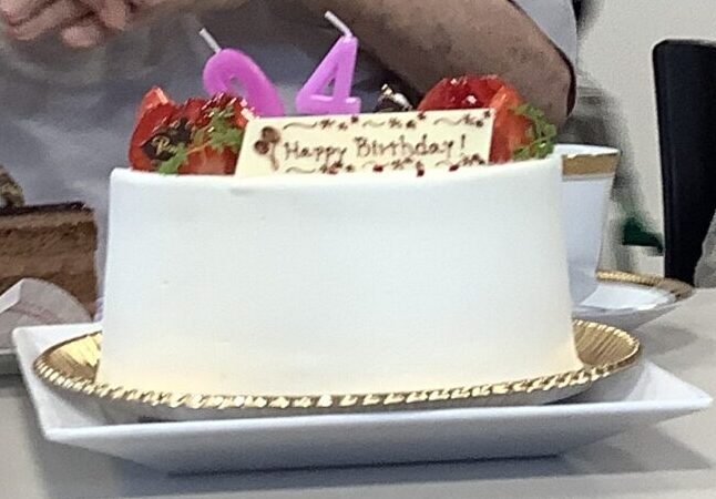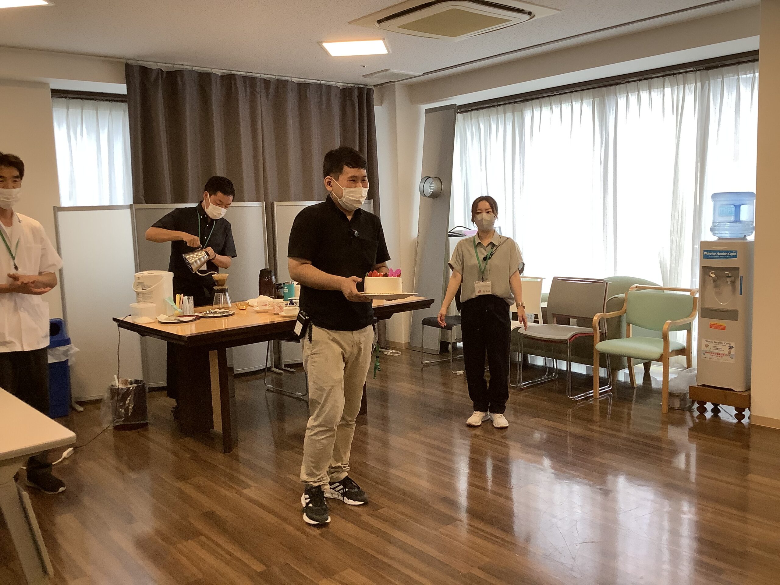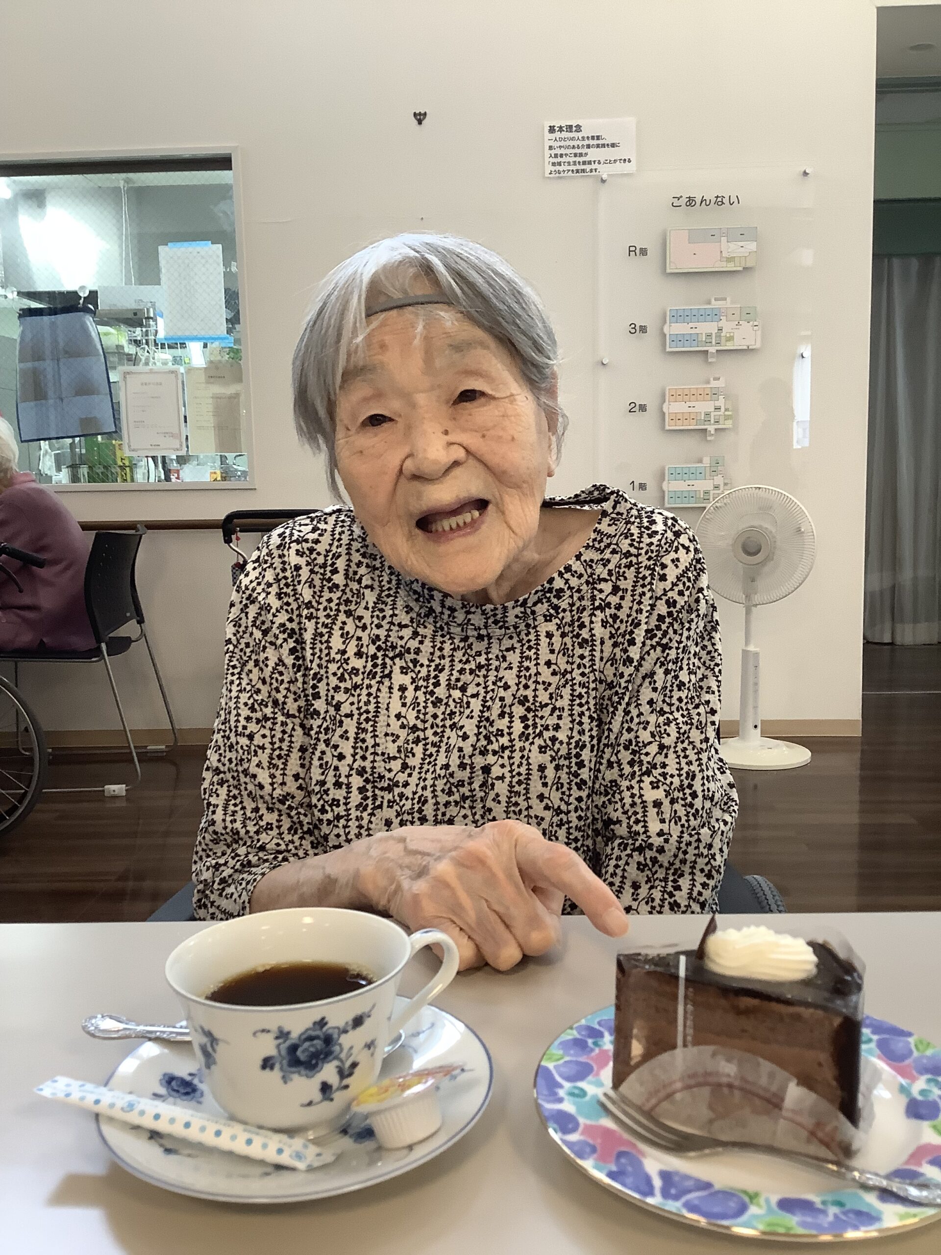 喫茶の日当日にお誕生日のご入居者様がおられ、サプライズでお誕生日のお祝いをさせていただきました。