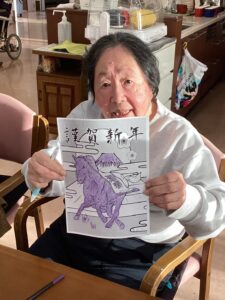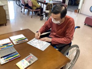 「どんな色で塗ろうか?」「もうお正月かあ」と、みんなでわいわい話しながら、楽しく色塗りしました。