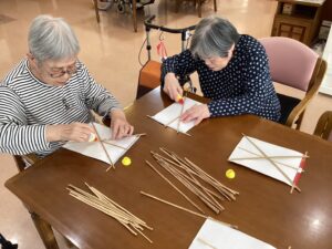昨年の暮れから新年に向けて、3階の空ユニットでは、みんなで凧作りをしました。