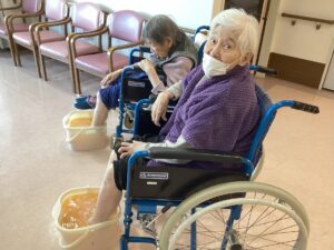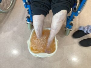 足浴の他にも温かい蒸しタオルで足を包み込み