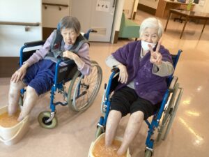 足を入れた瞬間、「あぁ~気持ちいいわ」「こんなの久しぶり」など、