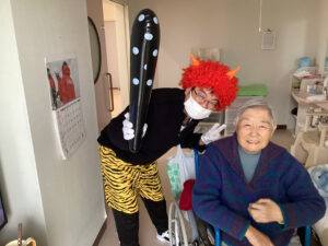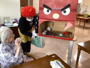 入居者様・利用者様は、鬼の口めがけて全力投球!👹