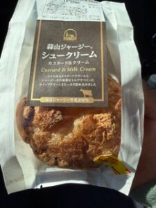 まず1食目(蒜山ジャージーシュークリーム)感想:ジャージー牛乳を使用されているであろうクリームがとてもおいしい一品でした。(テレビで、元TOKIOの城島茂さんが食べてたので、食べてみたかったんです!)¥480-