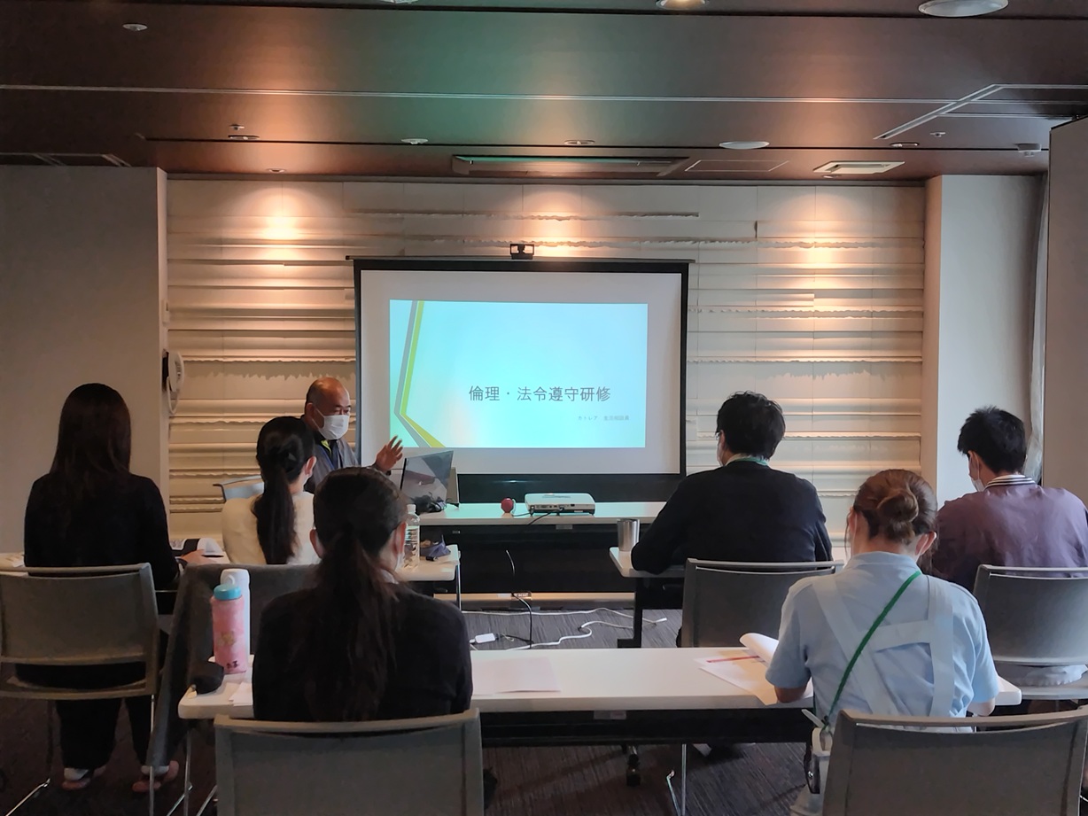 法人の沿革や法令遵守、身体拘束・虐待防止、接遇の研修を受講しました。
