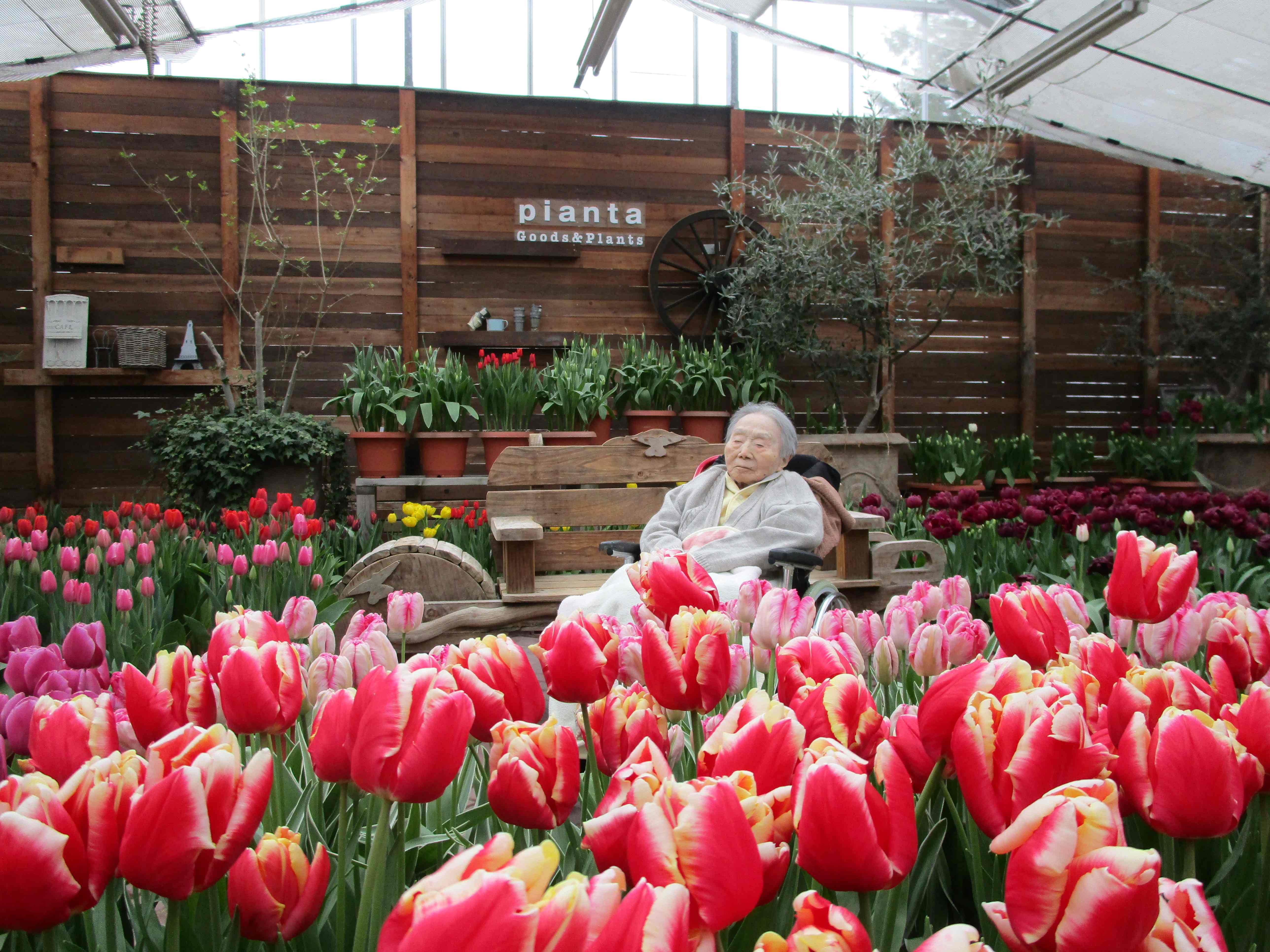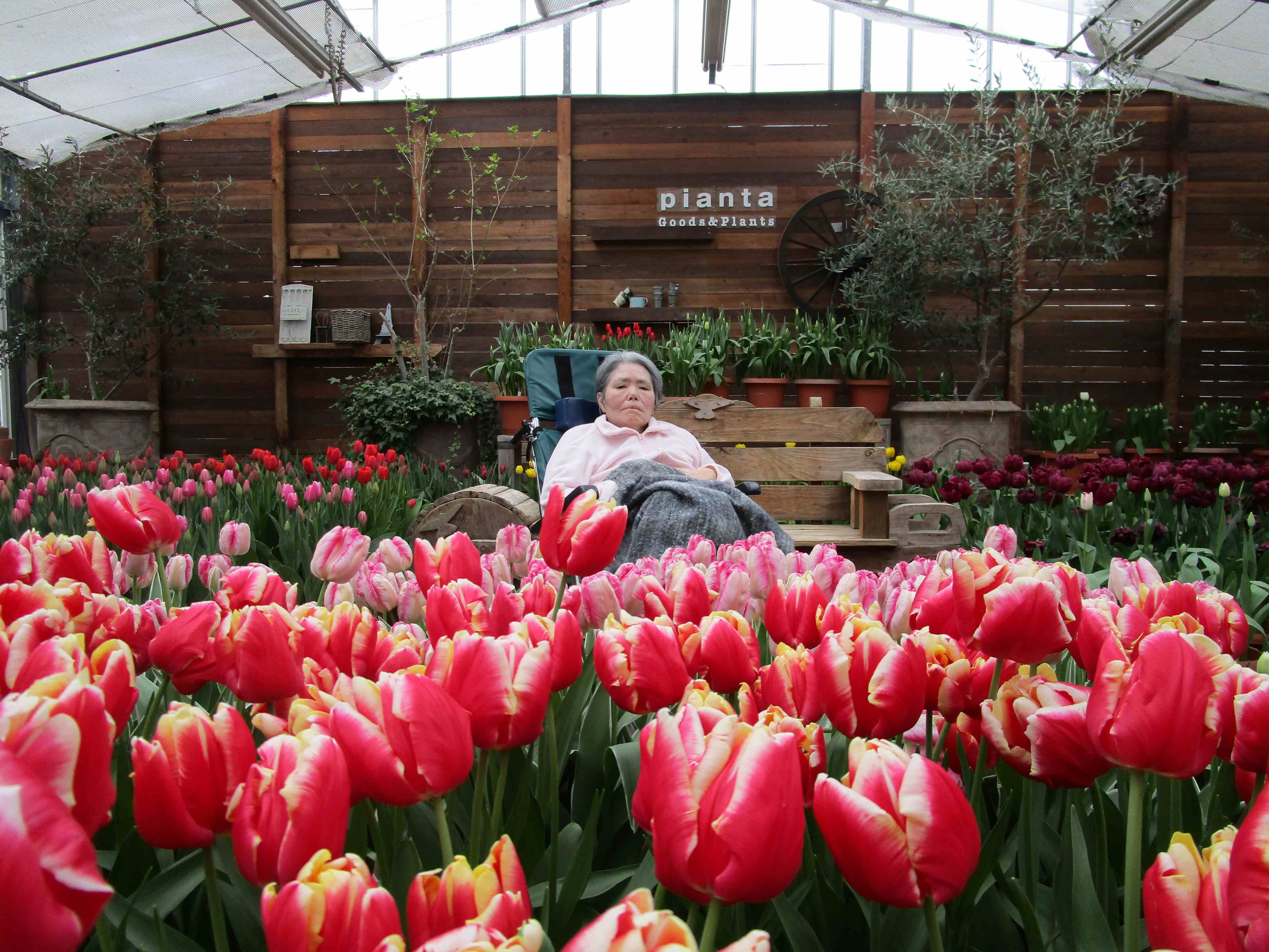 温室のチューリップもとてもきれいに咲いていました。園内はバリヤフリーで屋根もあり群れることなく散策できました。