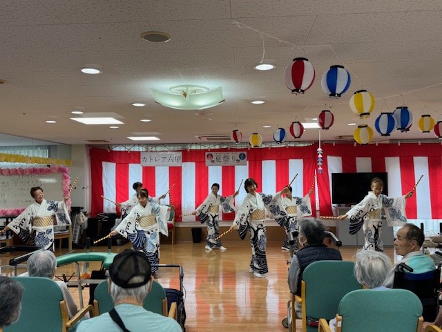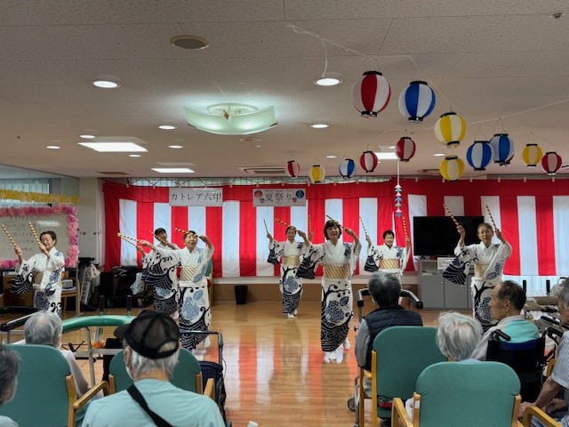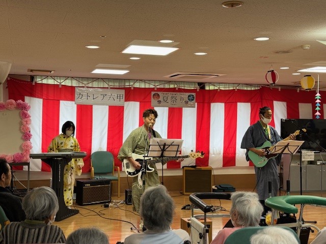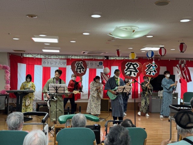 職員バンドの演奏や外部ボランティアによる銭太鼓、盆踊り
