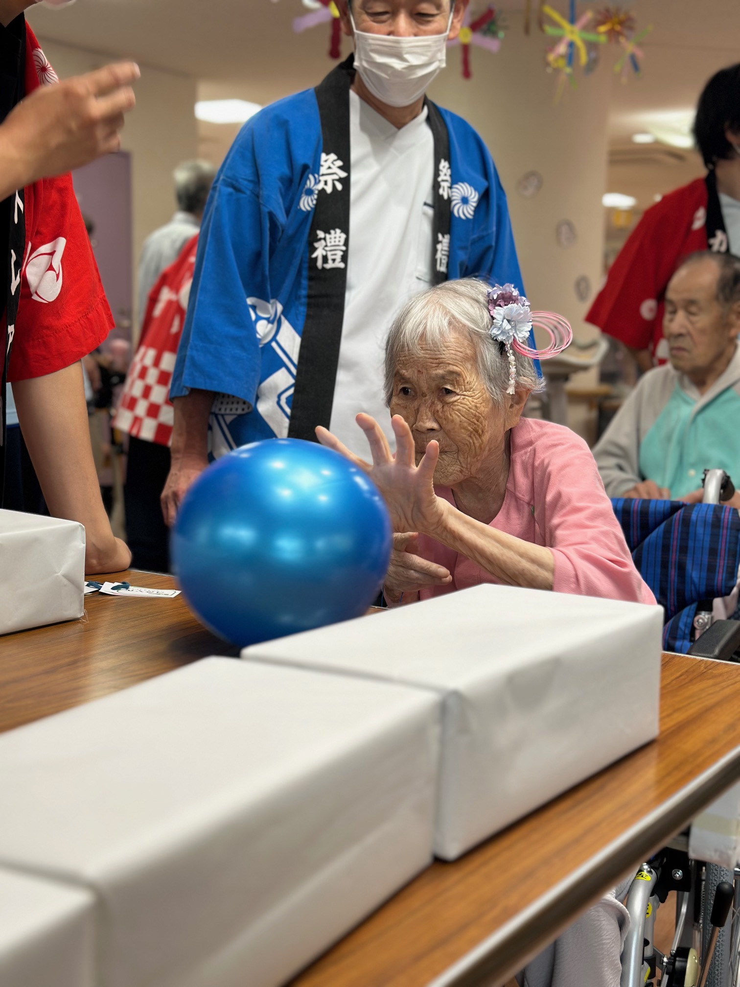 入所者様と職員が一緒になって盛り上がり