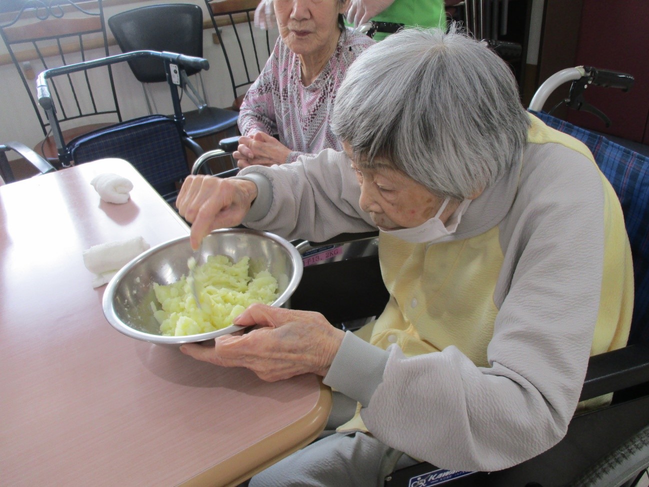 フォークを使い押しつぶす作業は意外に手指の力がいるので、