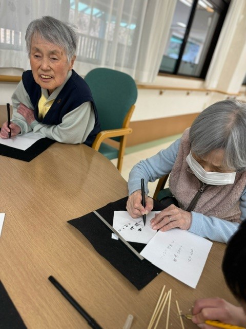 ご利用者様の目標を書初めし、凧作りに挑戦しました。