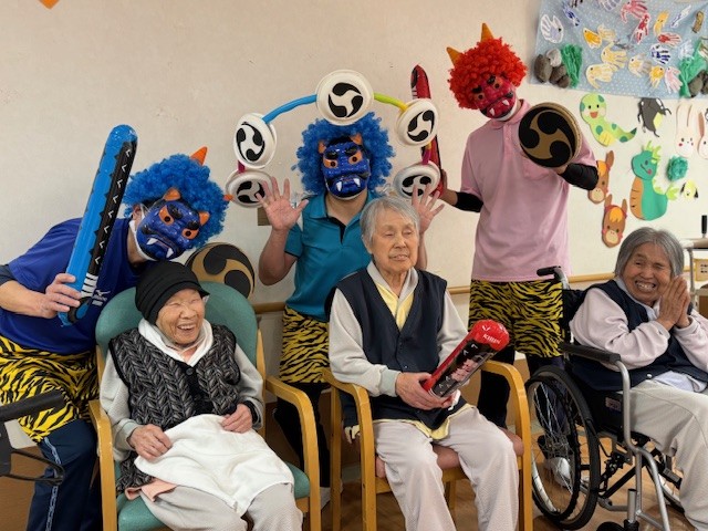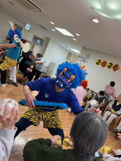 施設で節分の豆まきを行いました。