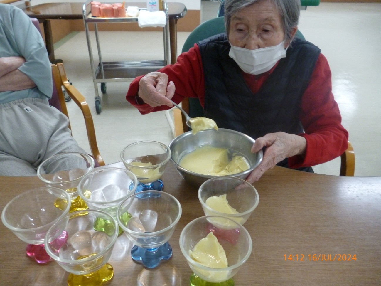 今月の2Fの調理クラブはプリンとフルーチェを使い、