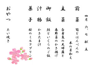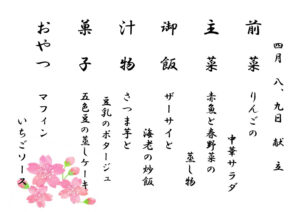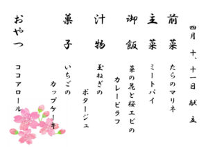 4月のデイケア特食 ~献立表~