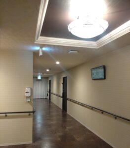 廊下は落ち着いた色味の床材でできていて照明器具も豪華です✨
