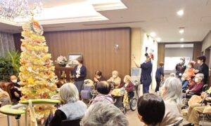 12/1、カトレアロイヤル神戸の玄関ホールにクリスマスツリーが飾られました🎄
