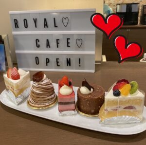 ランチ終了後にはロイヤルカフェもオープンです🍰ついさきほどランチを食べ終えた方でも・・・ 甘いものは別腹ですよね(*^_^*) ケーキを楽しみにみなさま足を運んでくださいます。 本日も5種類のケーキをご用意させて頂きました! 『わぁ〜美味しそう!』 『え〜全部食べたいわ!1個なんて選べない!』 どれにしようかじーっくり悩んで悩んで ワクワクしながらケーキを決めておられました(∩´∀`∩)