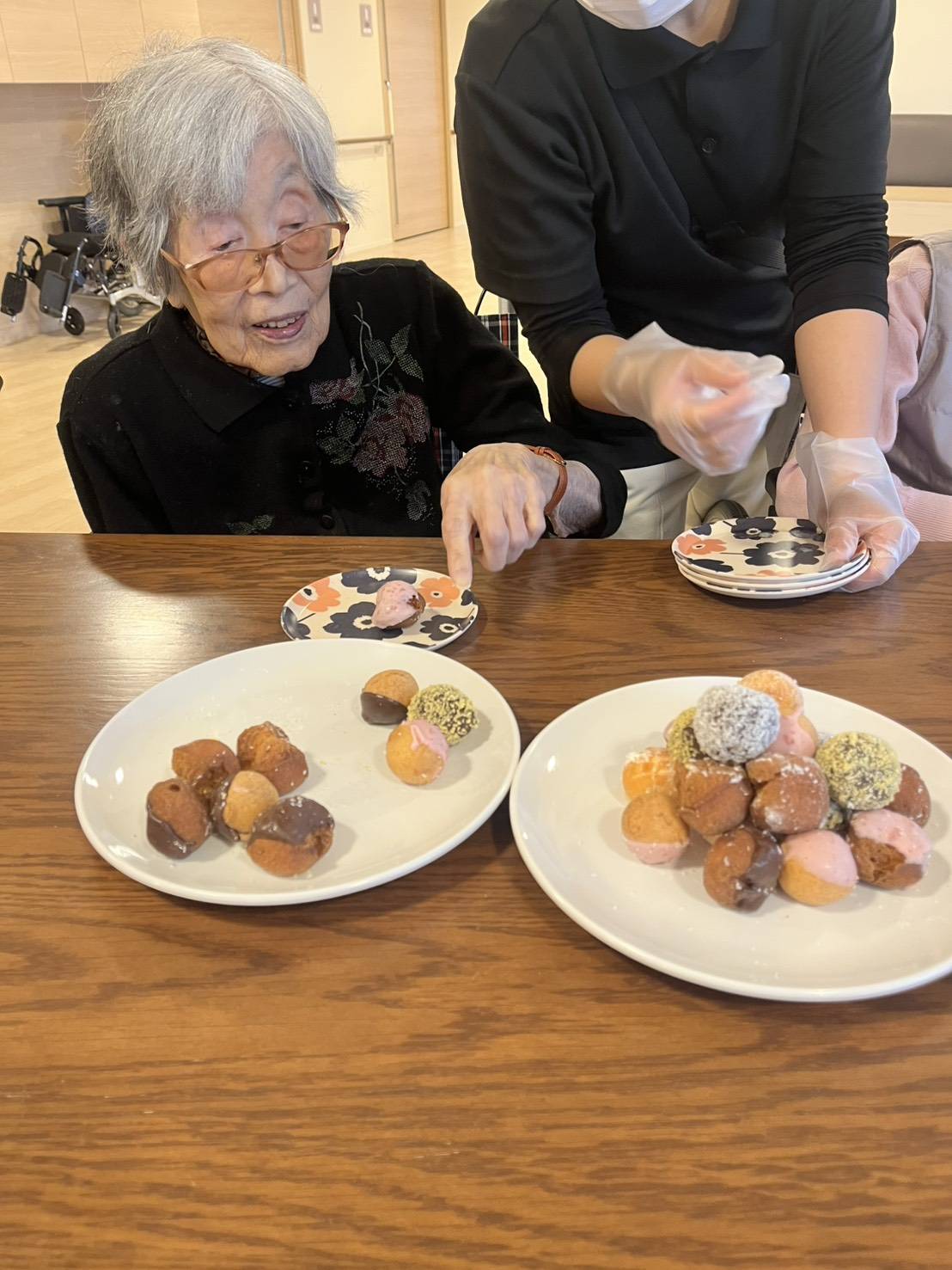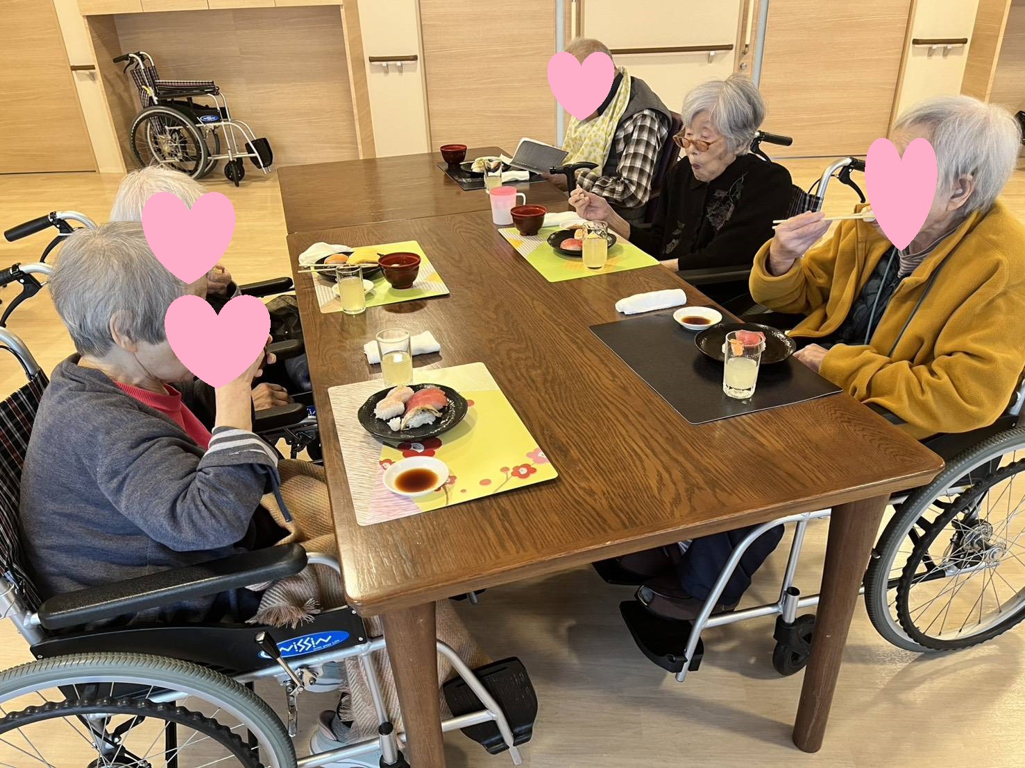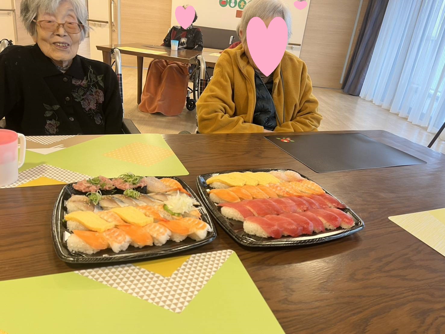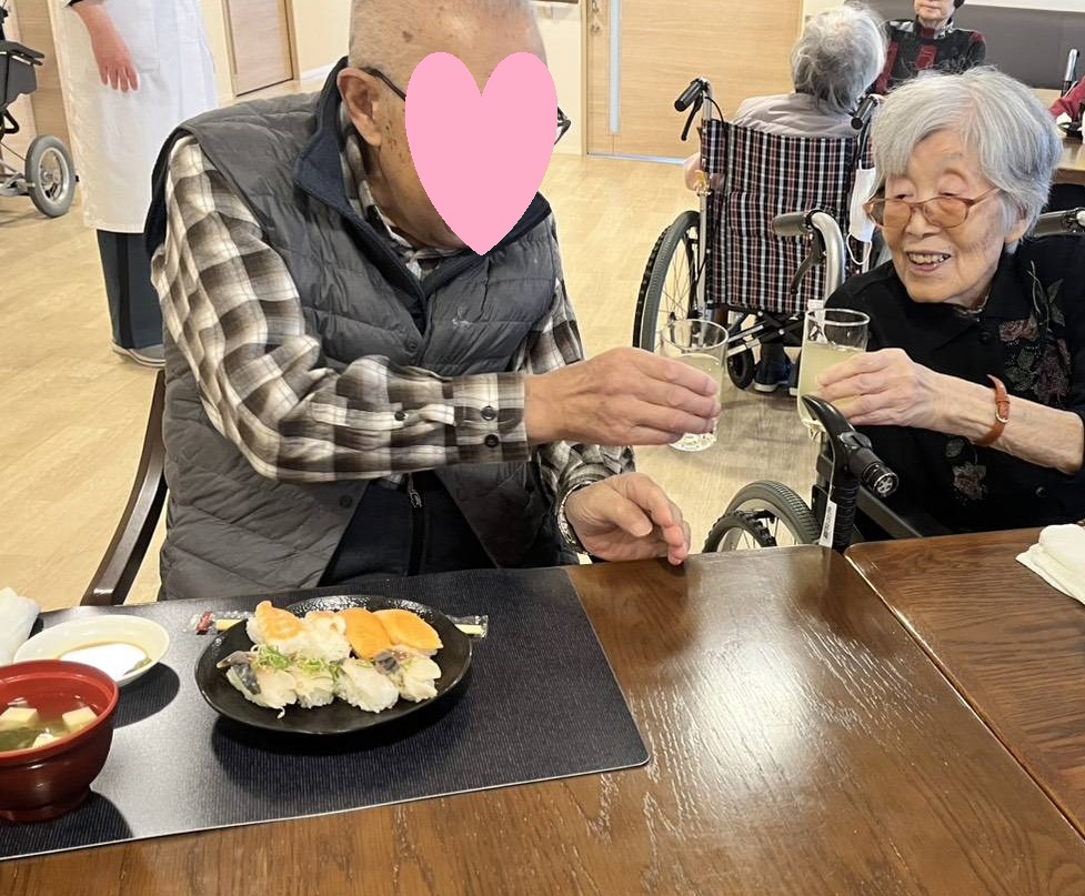利用者様には、ご自身で選んでいただいたお寿司を