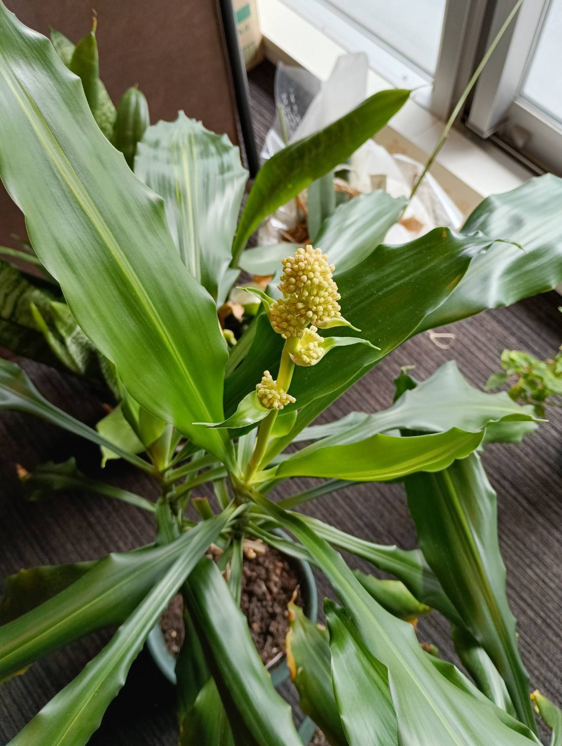 カトレア鈴蘭台のみなさ~ん エントランスの「幸福の木」に花?(蕾かも)が咲きました。 一輪が三輪に、数年に一度咲く非常に貴重な花で 特定の環境条件が揃った際でないと咲かないと言われ 滅多に見られないことから「幸福が訪れる」とされ 「幸福」「隠しきれない幸せ」と言った花言葉をもちます。 是非心のカメラに残しませんか?