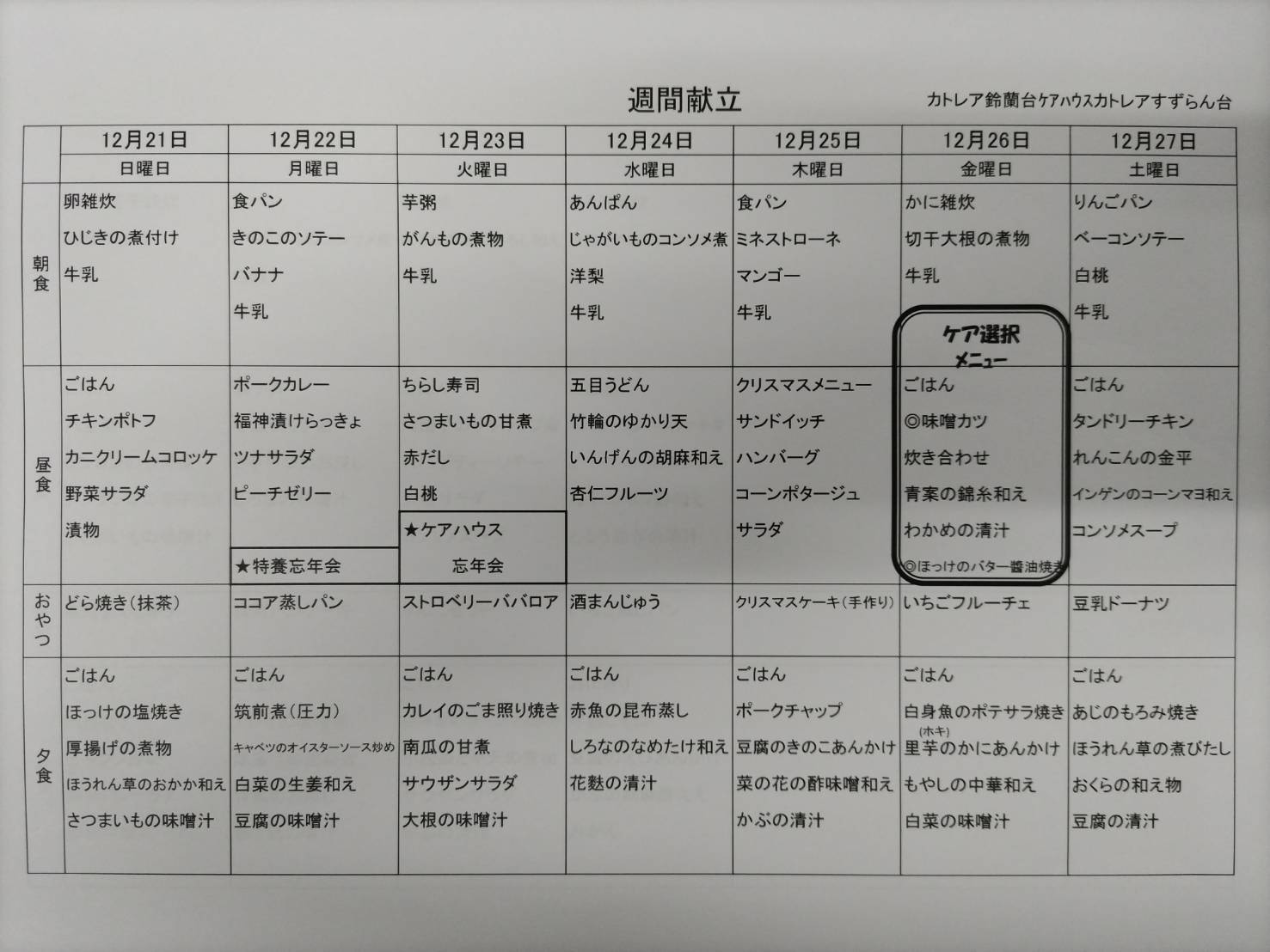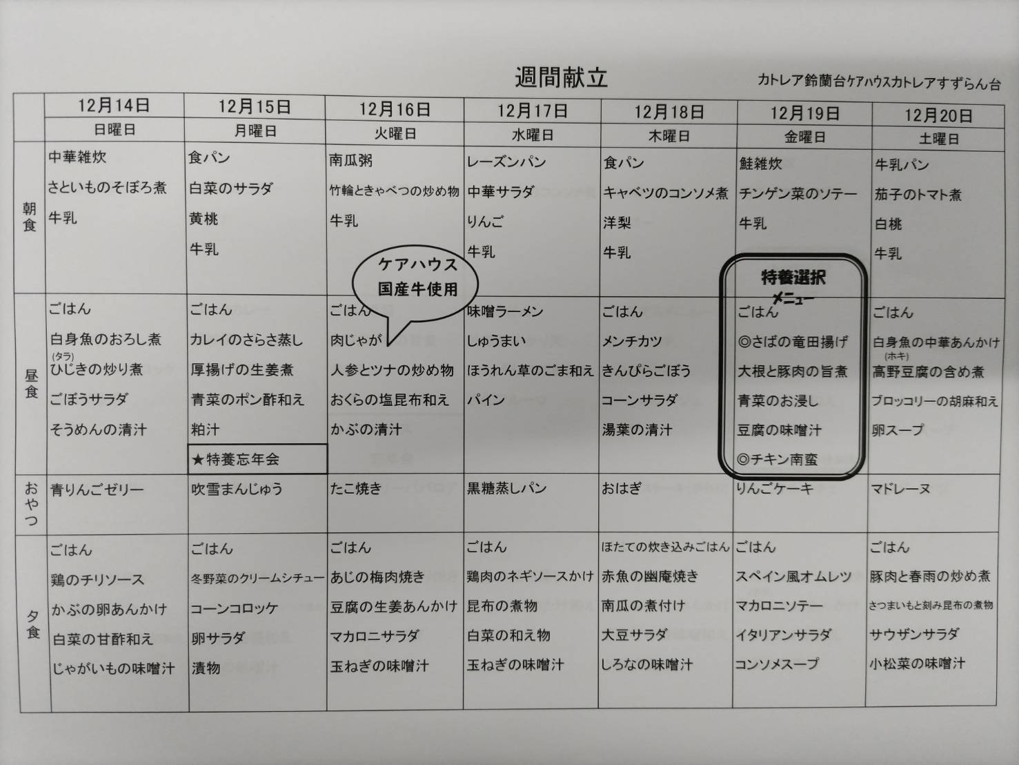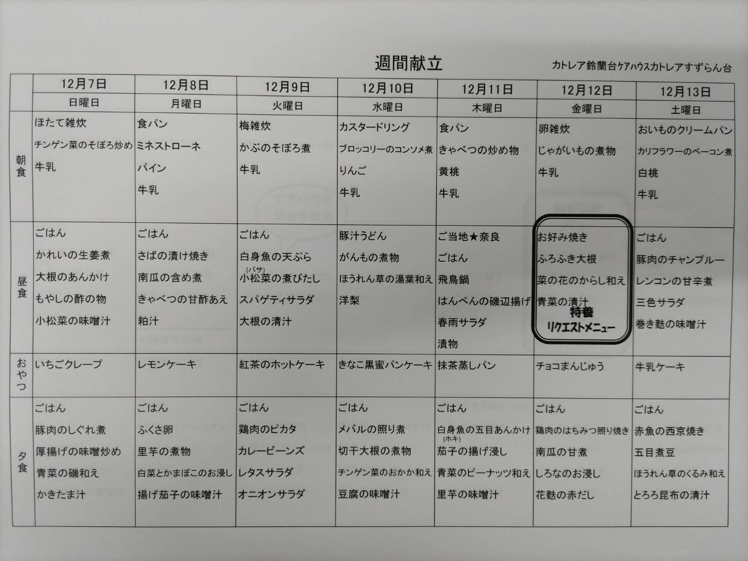 ケアハウスのリクエストメニューが